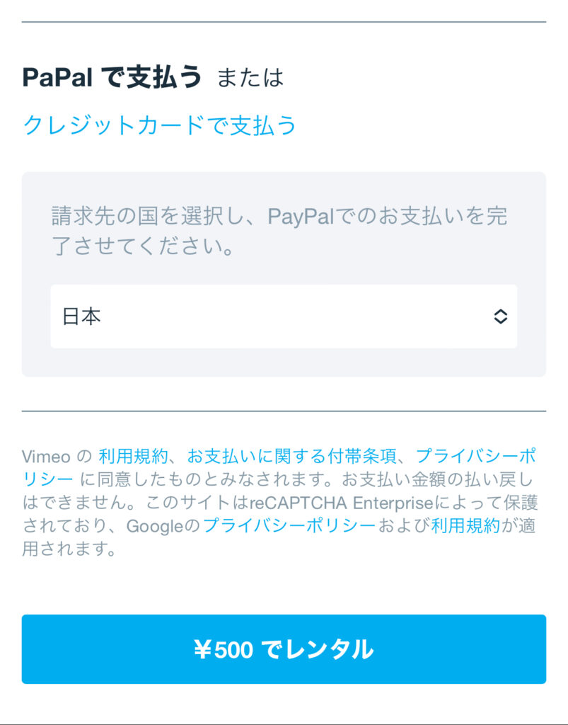 すると「請求先の国」の選択になりますので「日本」を選び、「レンタル」を押します。